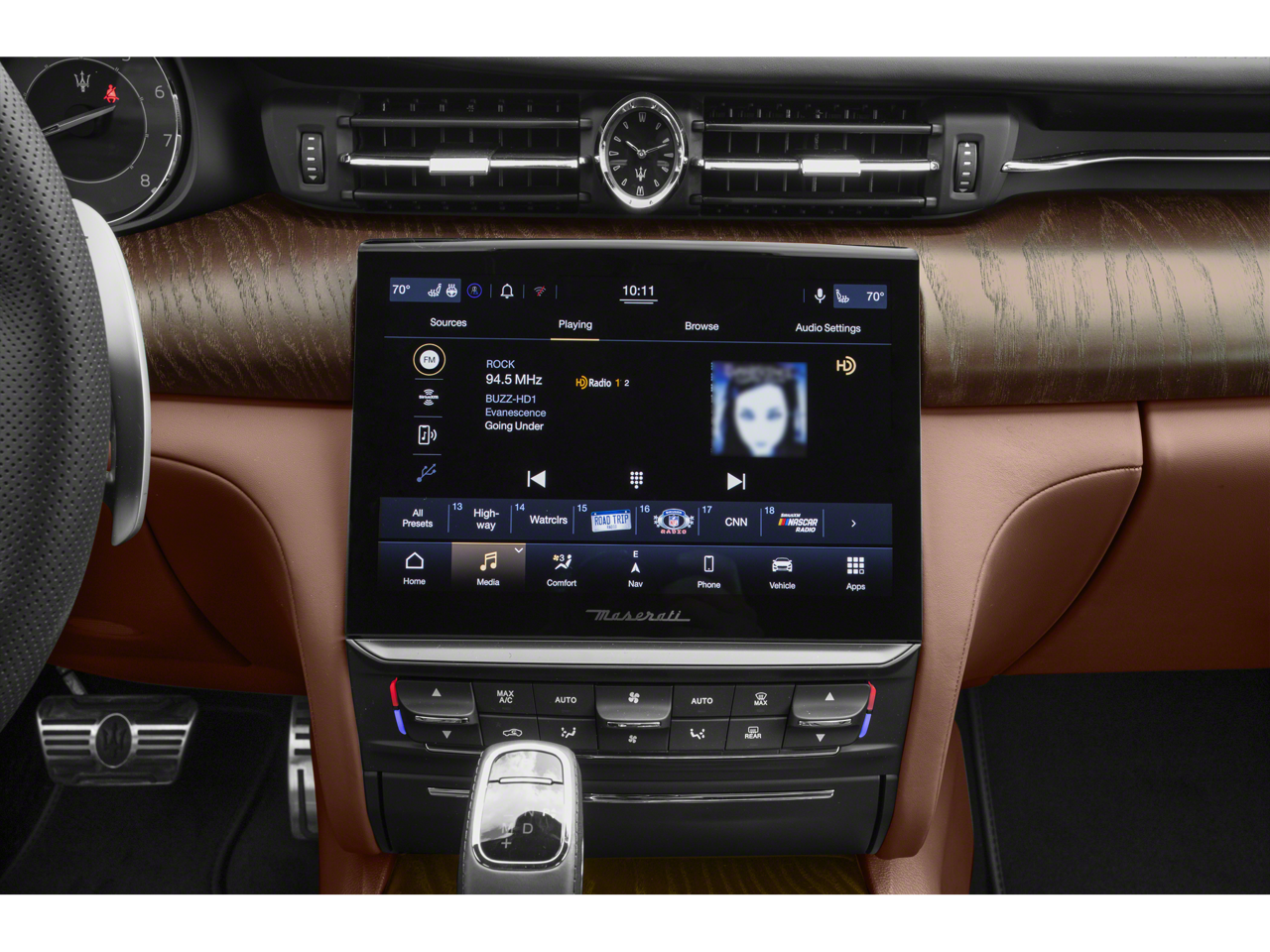 - Radio: AM/FM w/Maserati Intelligent Assistant -inc: 10.1" touchscreen display, navigation, HD Radio, SiriusXM satellite radio (1-year trial subscription), SD card reader, USB, aux-in, Apple CarPlay and Android Auto capable, Bluetooth® functionality, climate controls, OTA updates, Alexa in-vehicle voice assistance, eCall and bCall, remote diagnostics control, navigation services and App Store, wireless charger and harman/kardon premium audio system (900 watts and 10 speakers w/subwoofer)